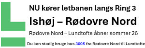 Langt om længe er det blevet søndag 26. oktober 2025, hvor den første etape af letbanen langs Ring 3 begynder at køre med passagerer. Letbanen kører mellem Ishøj St. og Rødovre Nord st. I sommeren 2026 forlænges letbanen til Lundtofte.