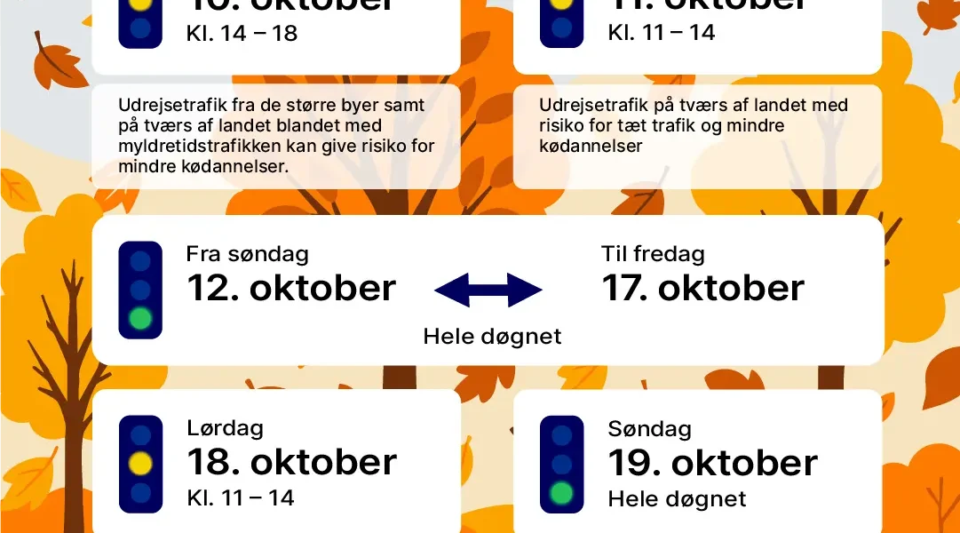 Læs mereVejdirektoratets trafikprognose for efterårsferien 2024, der starter fredag 11. oktober og slutter søndag 20. oktober.
